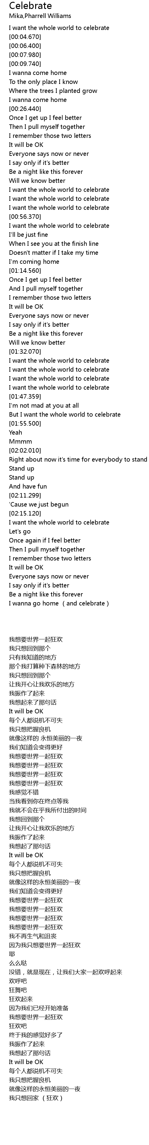 | [01:40.500] | I want the whole world to celebrate |