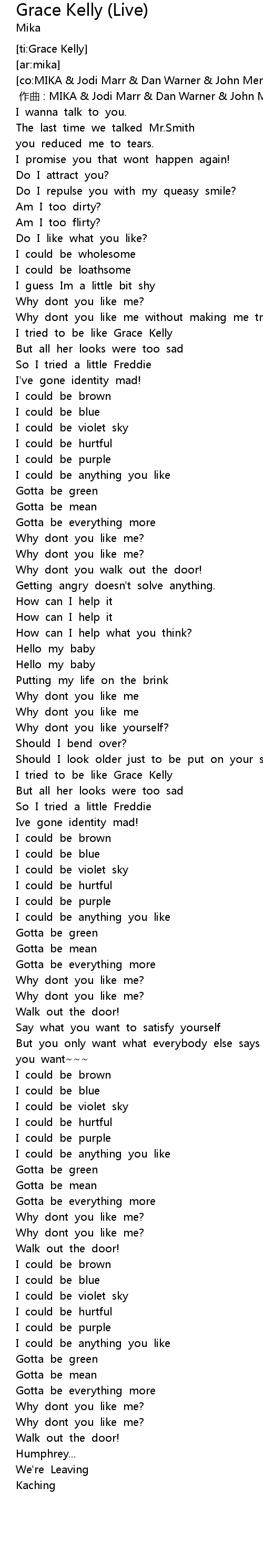 | [00:00.00] | 作曲 : MIKA & Jodi Marr & Dan Warner & John Merchant |