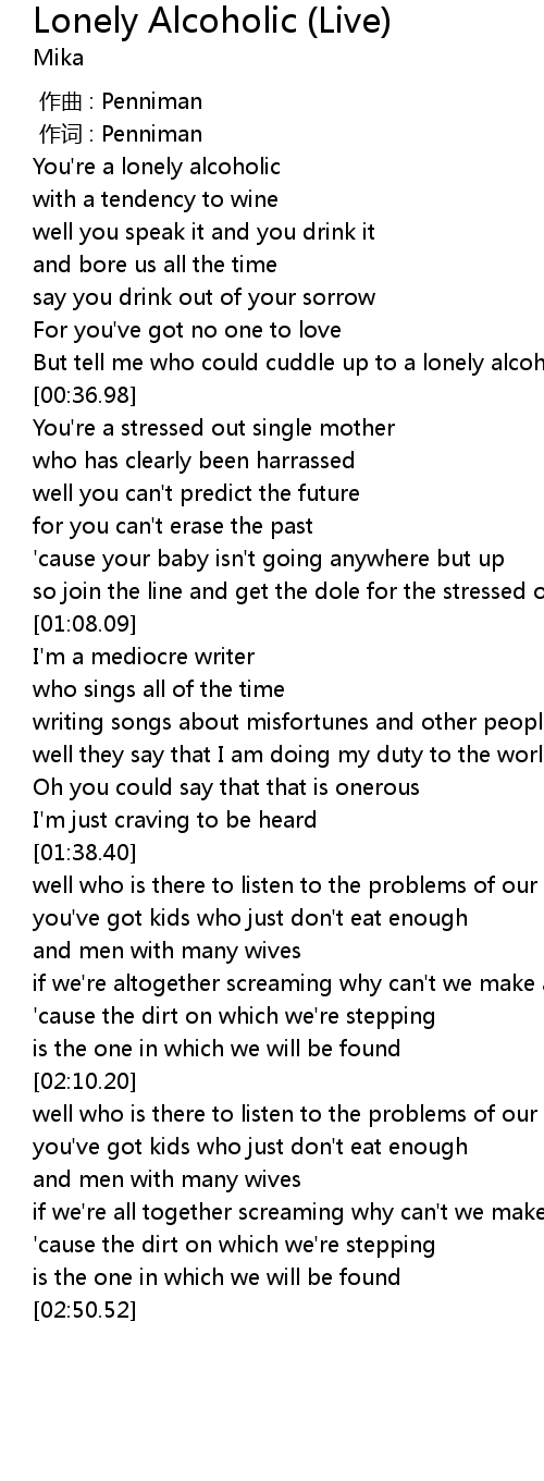 | [00:12.37] | You' re a lonely alcoholic |