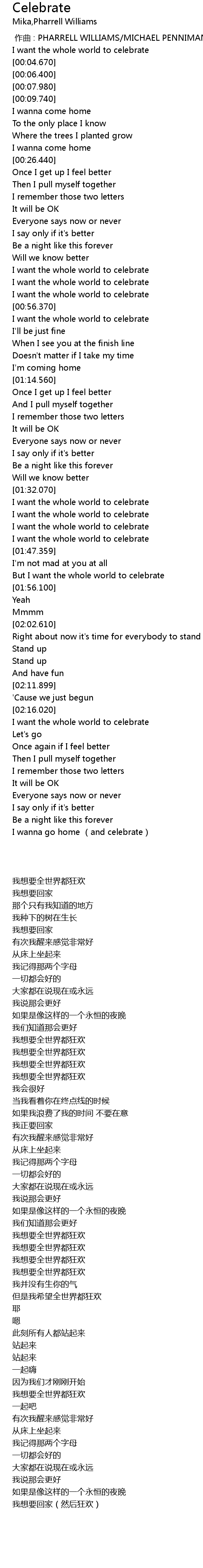 | [01:40.500] | I want the whole world to celebrate |