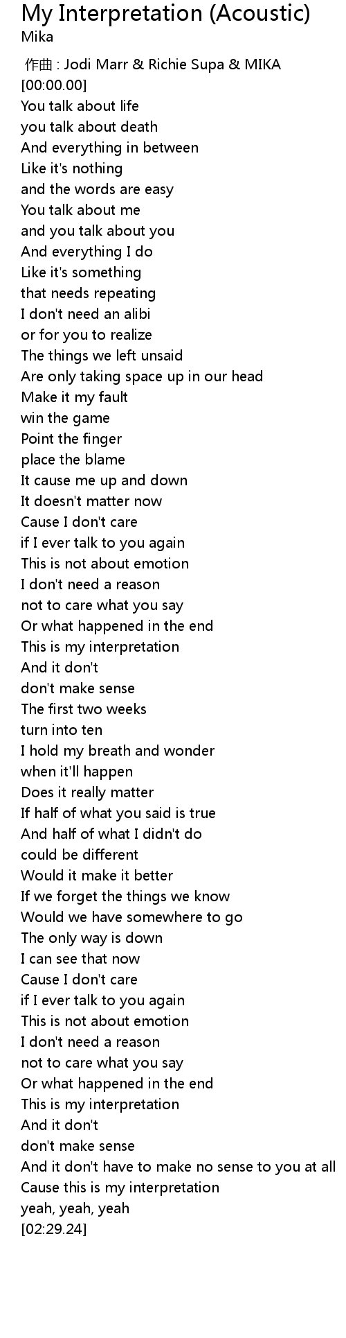 | [00:00.00] | 作曲 : Jodi Marr & Richie Supa & MIKA |
