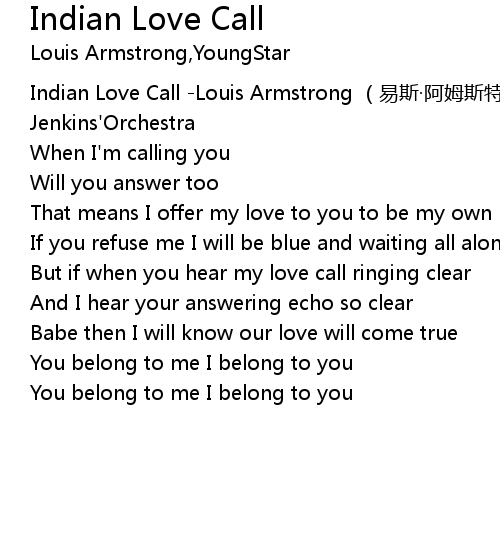 | [00:00.00] | Indian Love Call Louis Armstrong yi si a mu si te lang Gordon Jenkins' Orchestra |