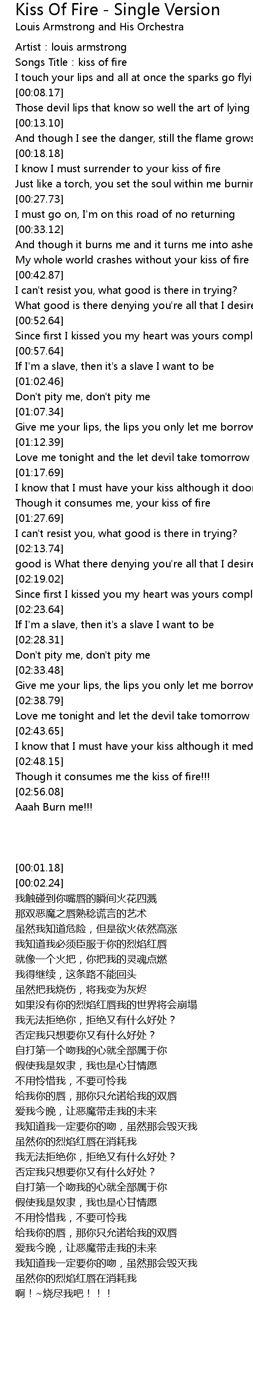 | [00:18.80] | I know I must surrender to your kiss of fire |