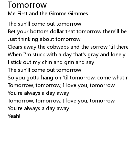 | Tomorrow, tomorrow, I love you, tomorrow | |