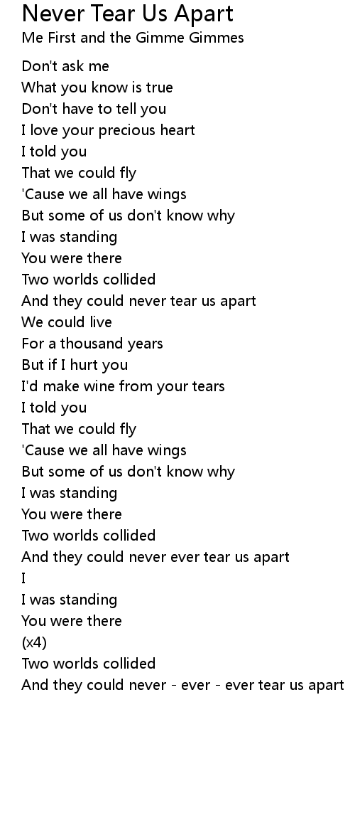 And they could never - ever - ever tear us apart |