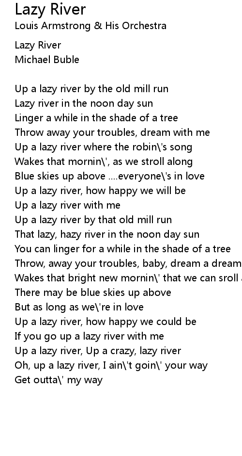 Up a lazy river where the robin\'s song |