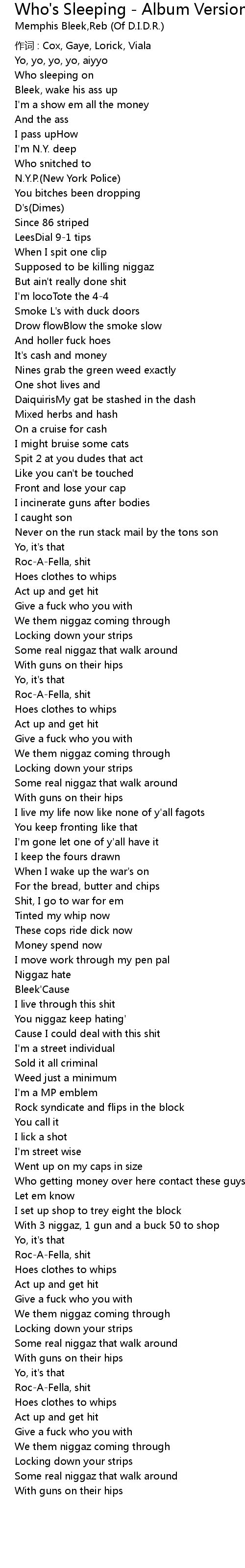 | Song | Who's Sleeping - Album Version (Explicit) |