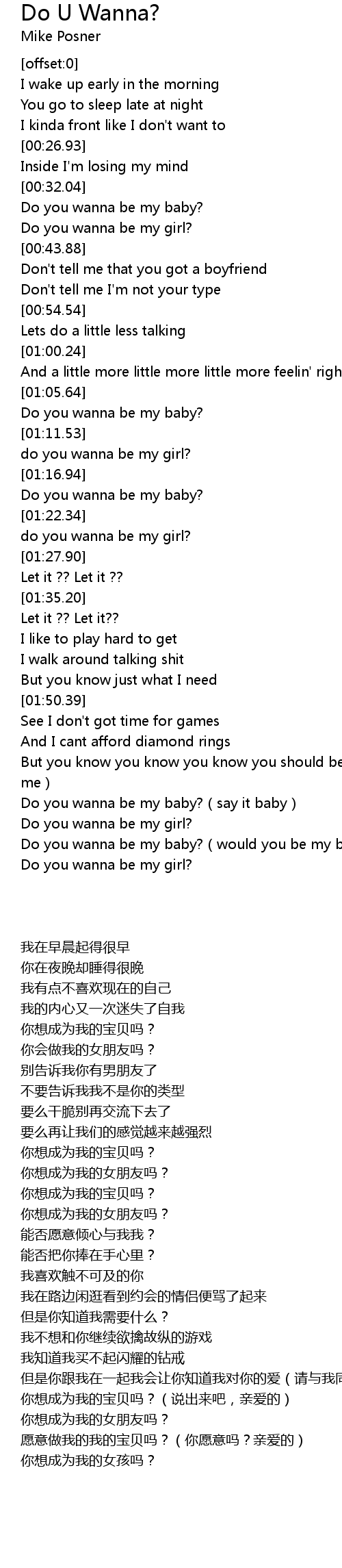| [02:02.43] | Do you wanna be my baby?(say it baby) |