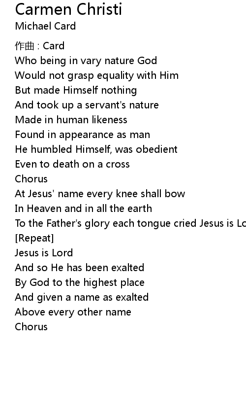 | To the Father' s glory each tongue cried Jesus is Lord | |