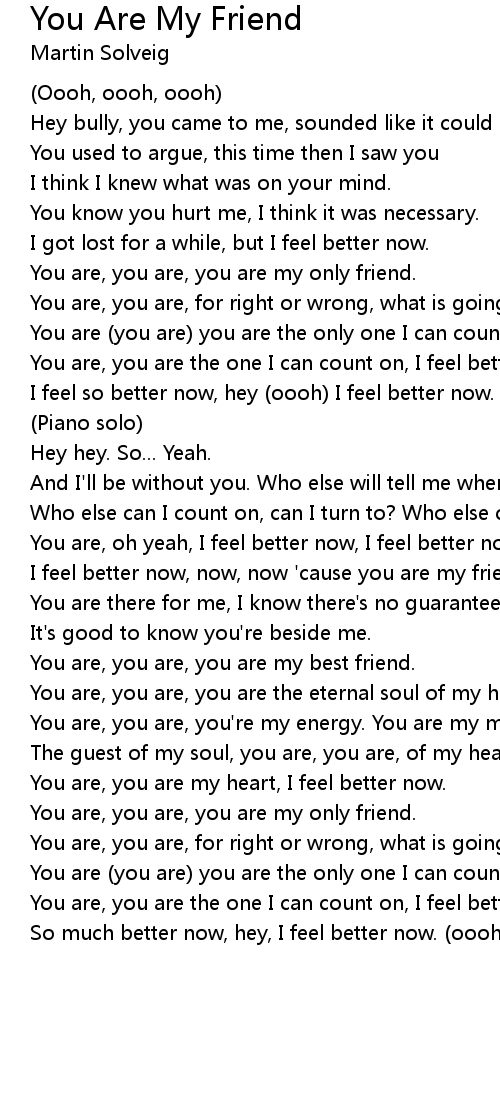I feel better now, now, now 'cause you are my friend. |