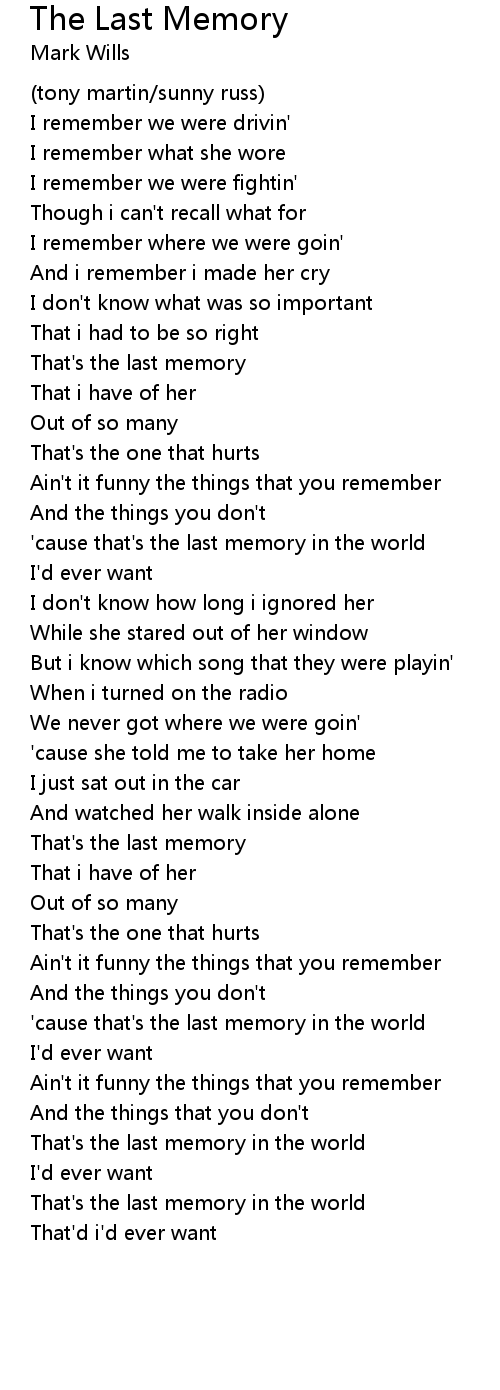 'cause that's the last memory in the world |