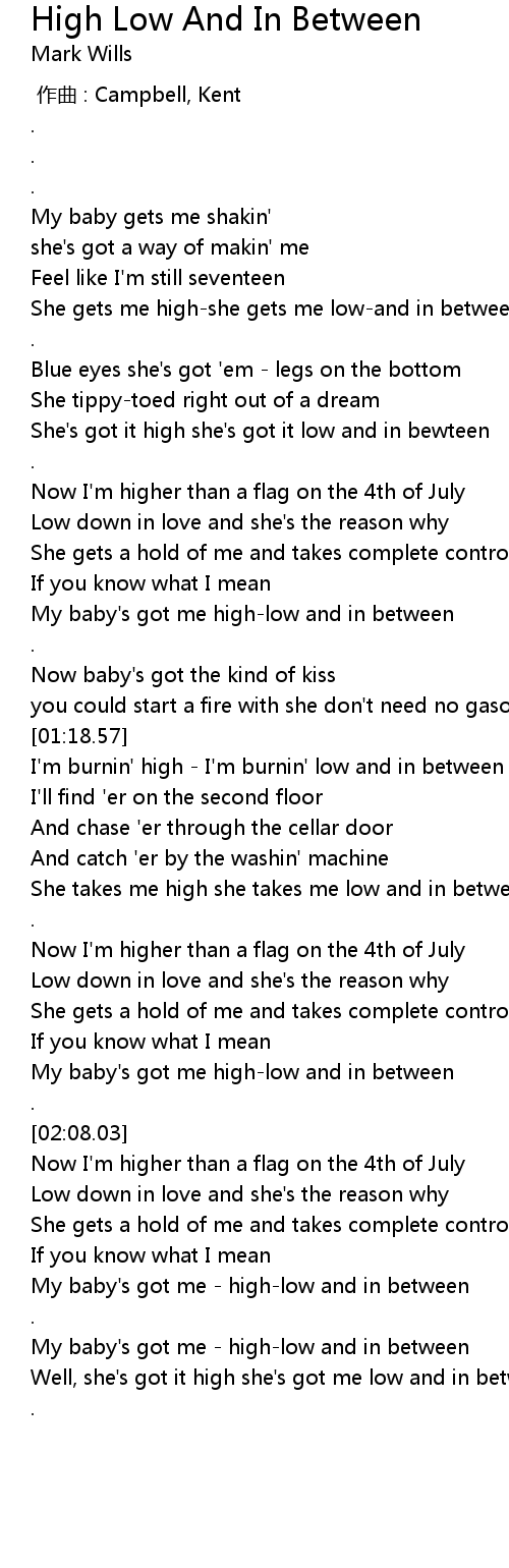 | [03:00.15] | Well, she's got it high she's got me low and in between |