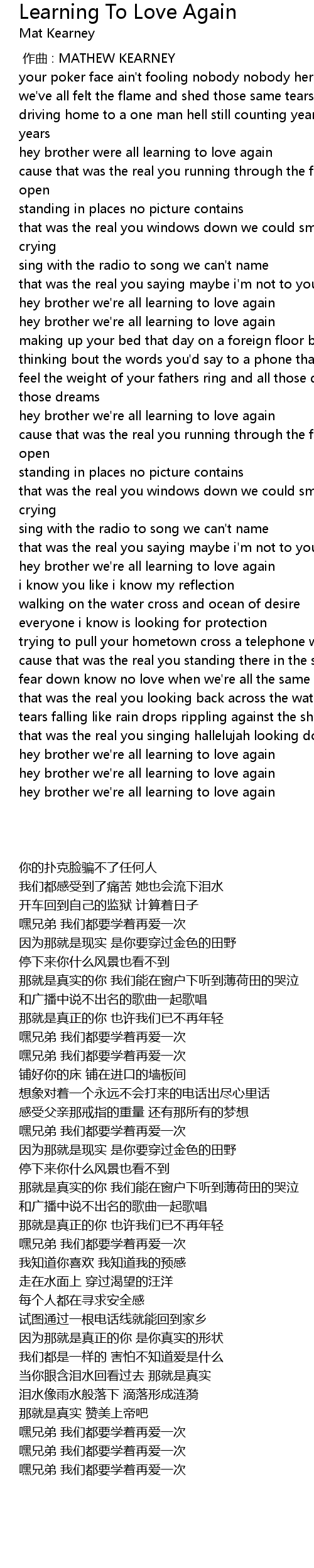 | [01:58.890] | hey brother we' re all learning to love again |