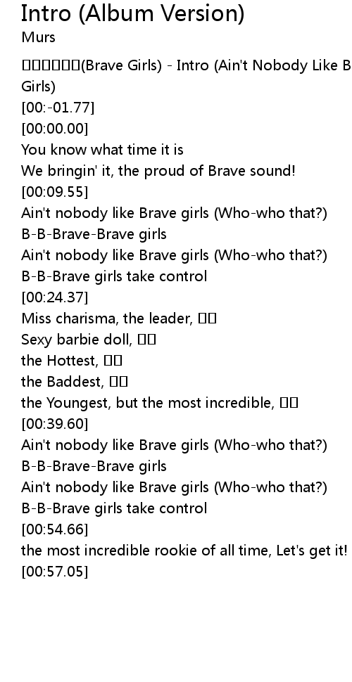 | [00:-07.04] | Brave Girls Intro Ain' t Nobody Like Brave Girls |