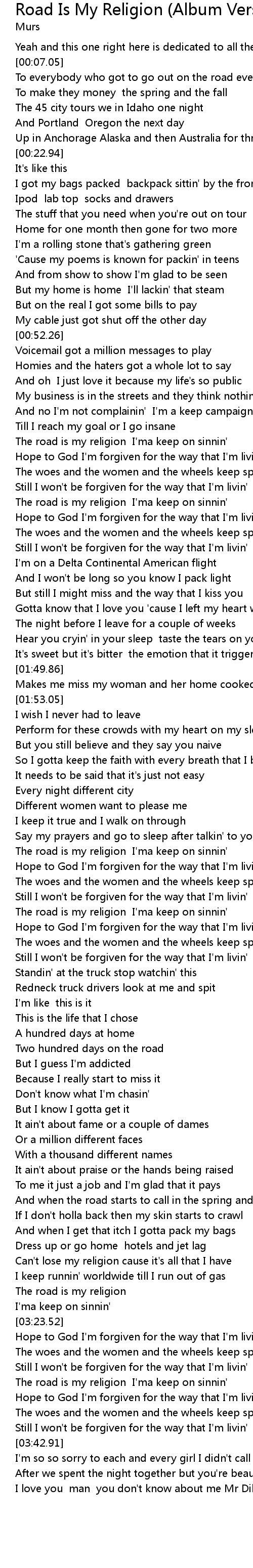 The road is my religion I'ma keep on sinnin' |