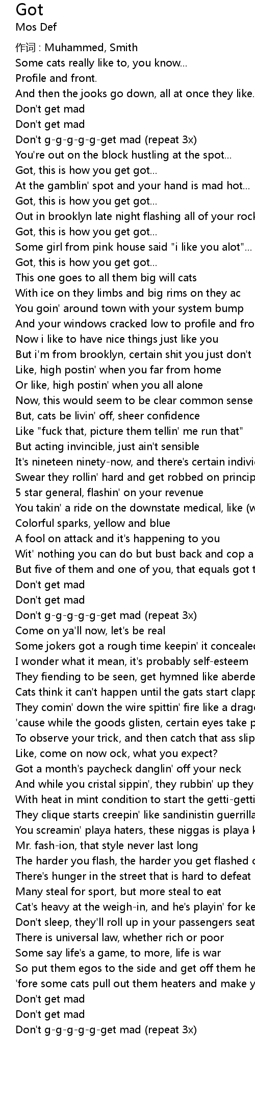 | Don't g-g-g-g-g-get mad (repeat 3x) |