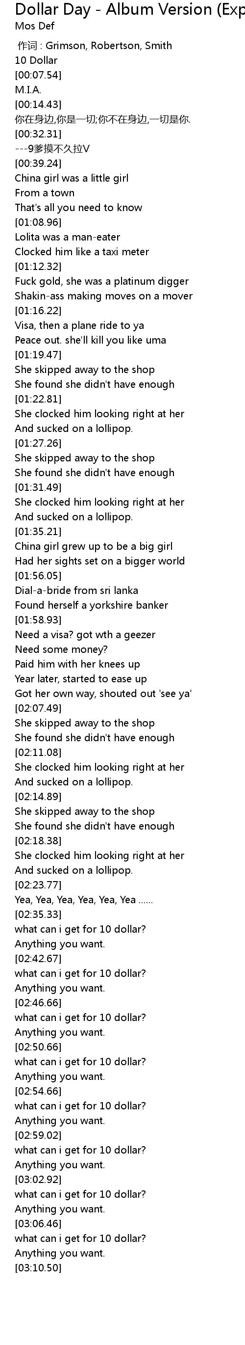 | [00:04.56] | 10 Dollar |