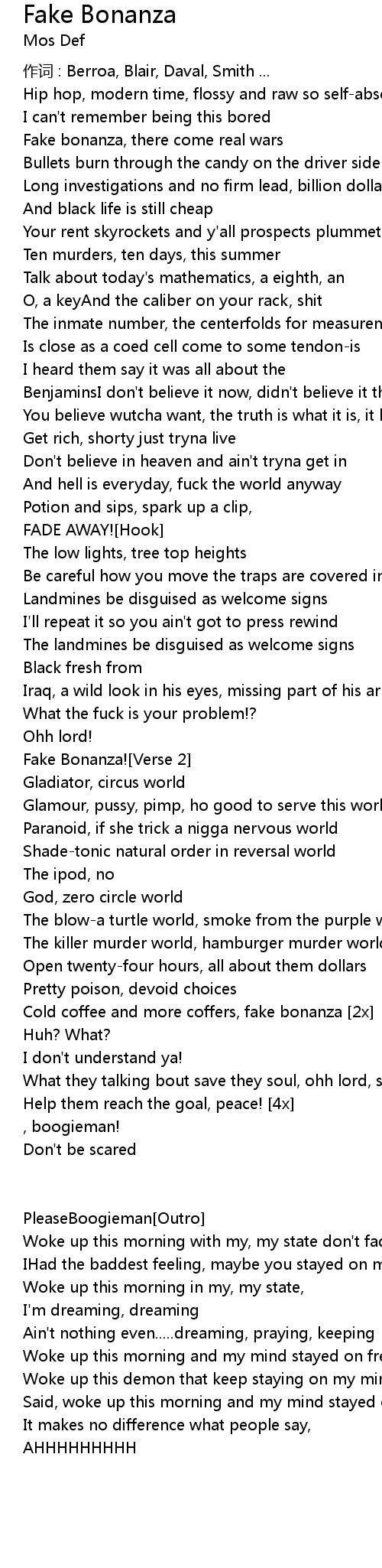 | Verse 1 Hip hop, modern time, flossy and raw so selfabsorbed, immature | |