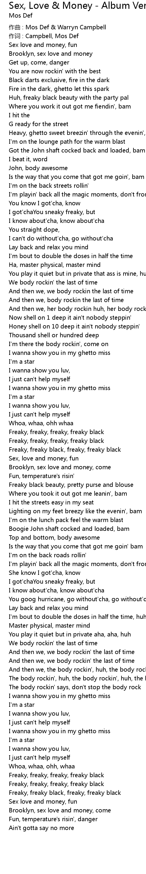 | 作词 : Campbell, Mos Def | |