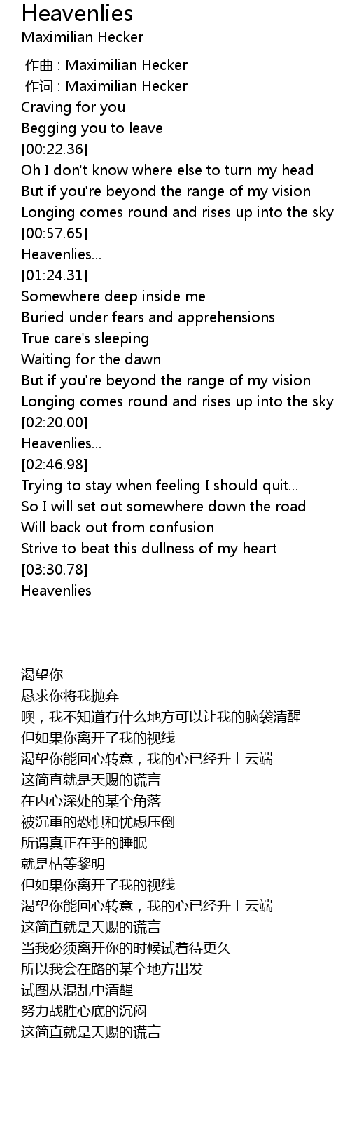 | [00:01.00] | 作词 : Maximilian Hecker |