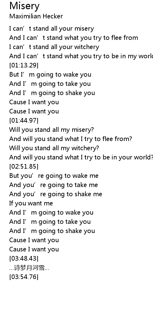 | [02:02.50] | Will you stand all my misery? |