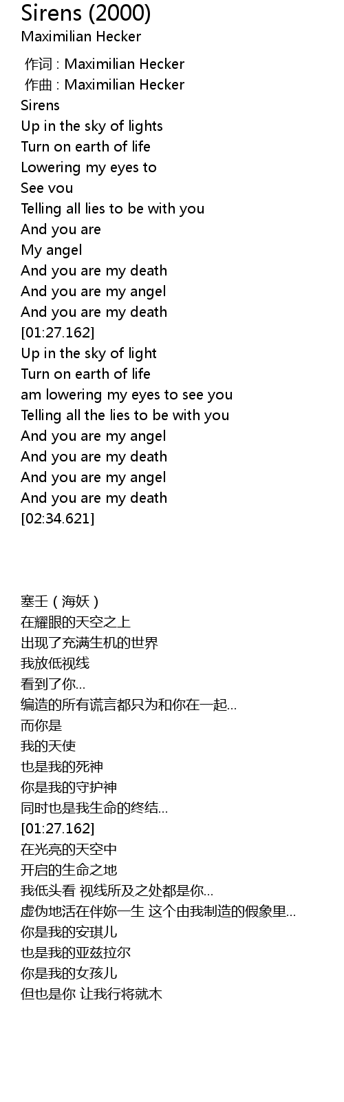 | [00:00.000] | 作词 : Maximilian Hecker |