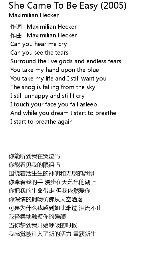 | [00:00.000] | zuo ci : Maximilian Hecker |