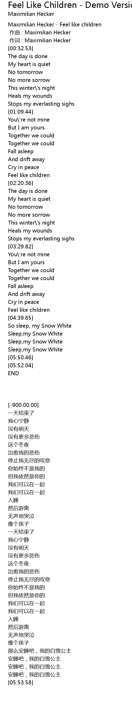 | [-900:00.00]Maximilian Hecker - Feel like children | |