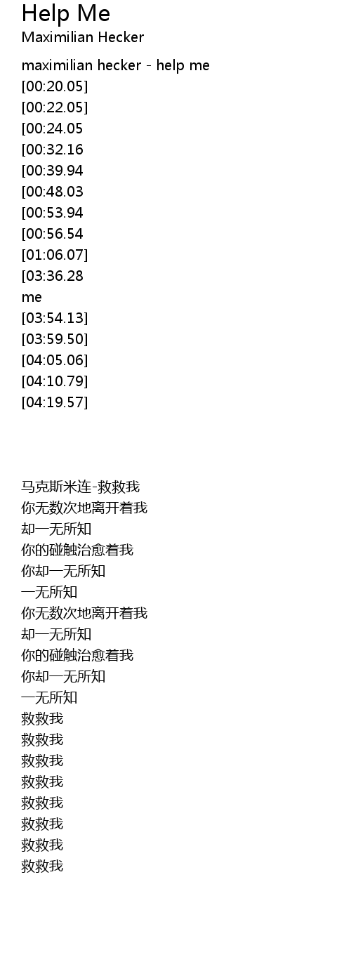 | [03:44.27][03:36.28][03:28.41][03:20.26][03:12.26][03:04.44][02:56.52][02:48.37] | help me |
