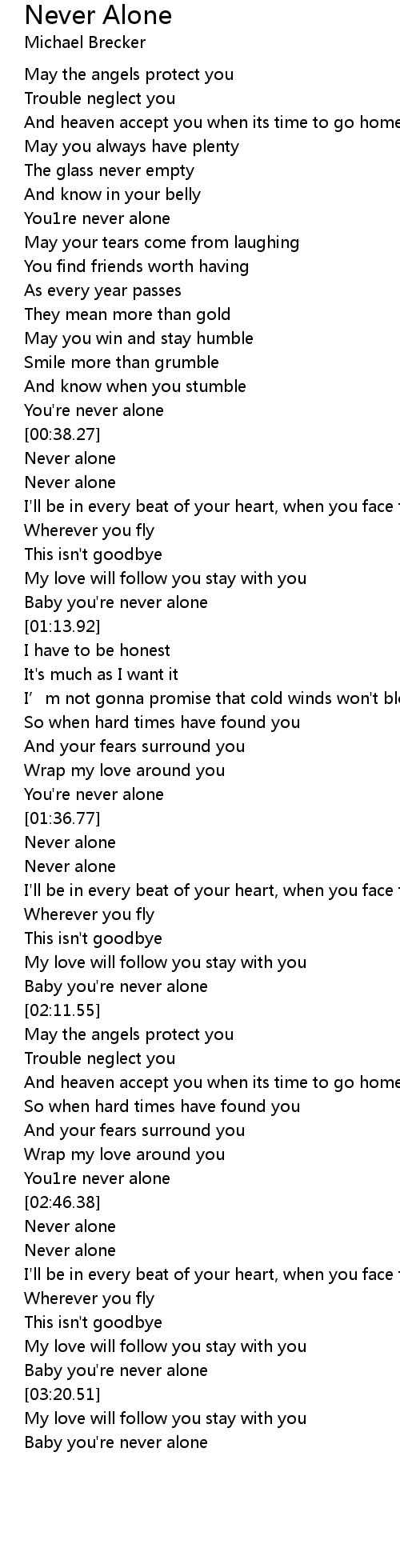 | [00:36.02] | You' re never alone |