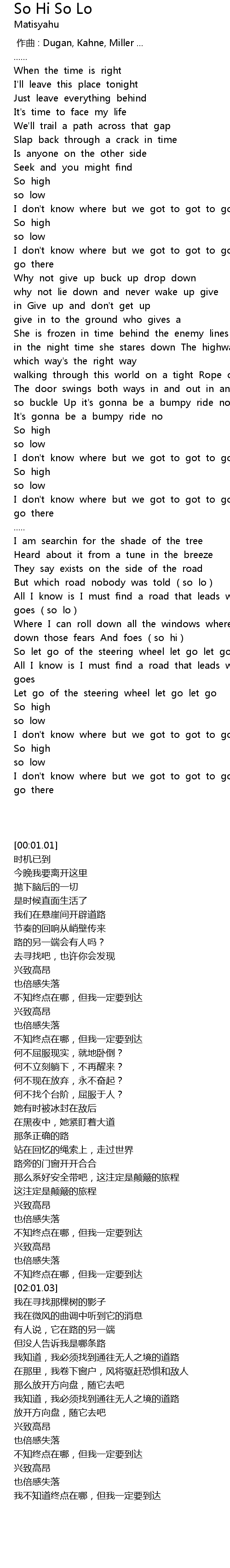 | [02:40.00] | So let go of the steering wheel let go let go (so lo) |
