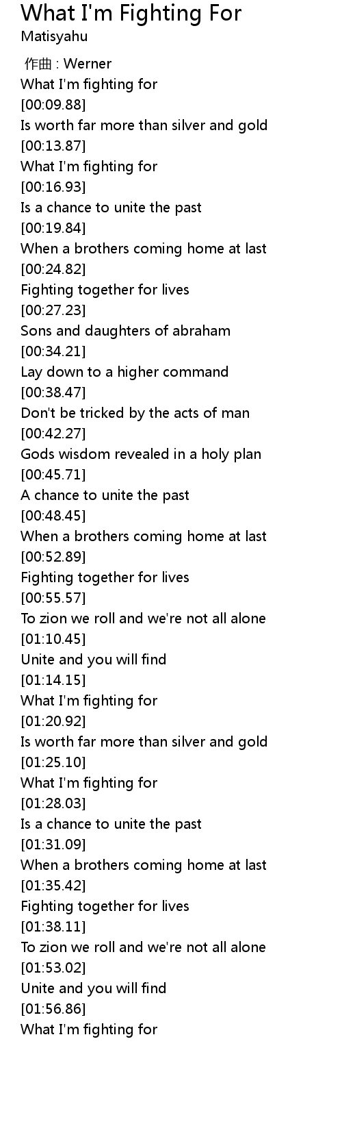 | [01:47.43] | To zion we roll and we' re not all alone |