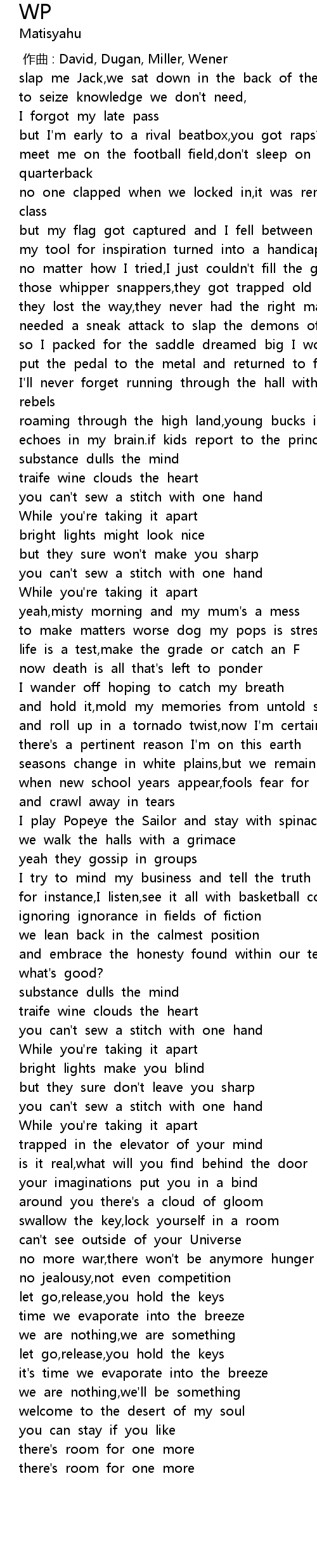 | [00:00.00] | zuò qǔ : David, Dugan, Miller, Wener |