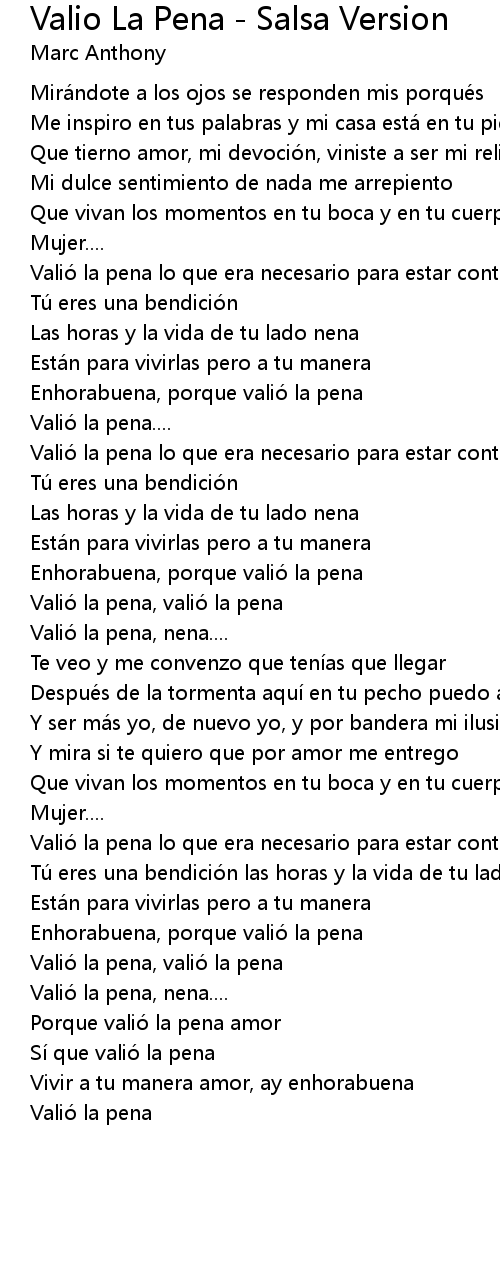 | Song | Valio La Pena - Salsa Version |