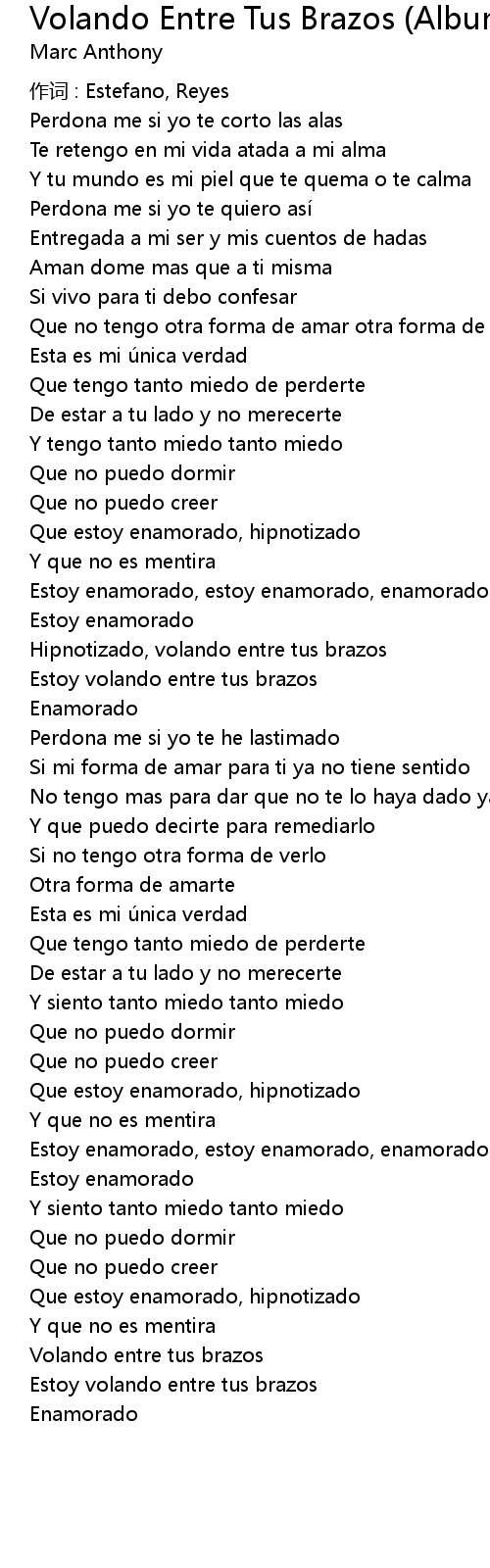 | Song | Volando Entre Tus Brazos (Album Version) |