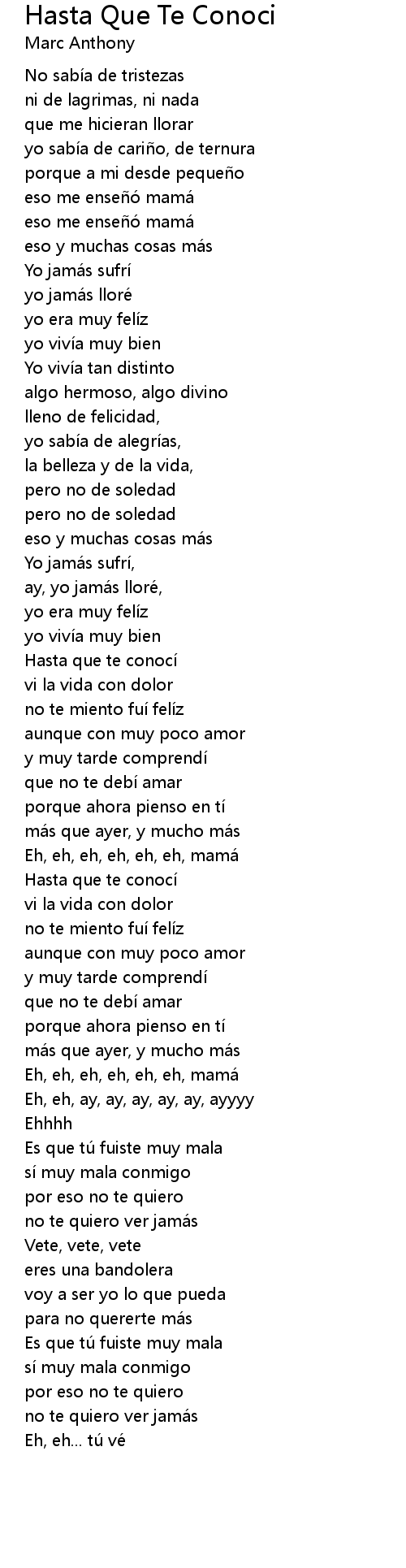| Song | Hasta Que Te Conoci |