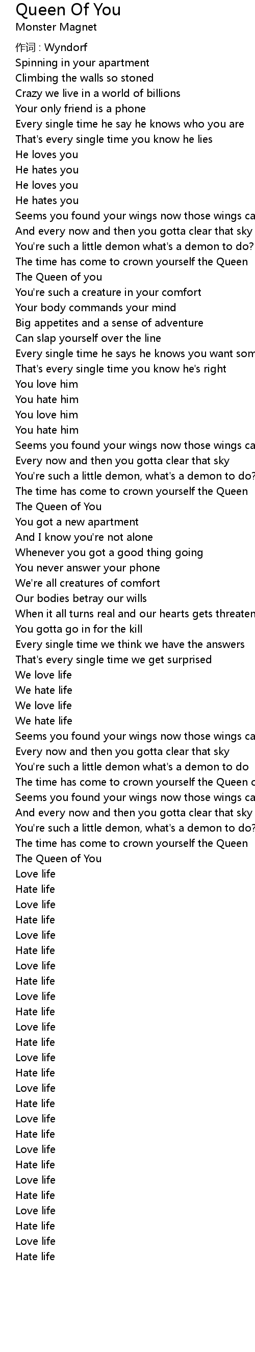 | 作词 : Wyndorf | |