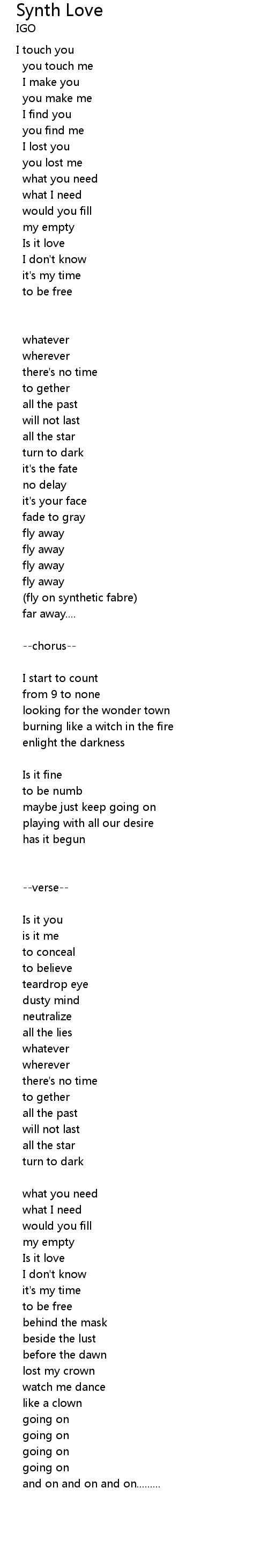 Synth Love Lyrics