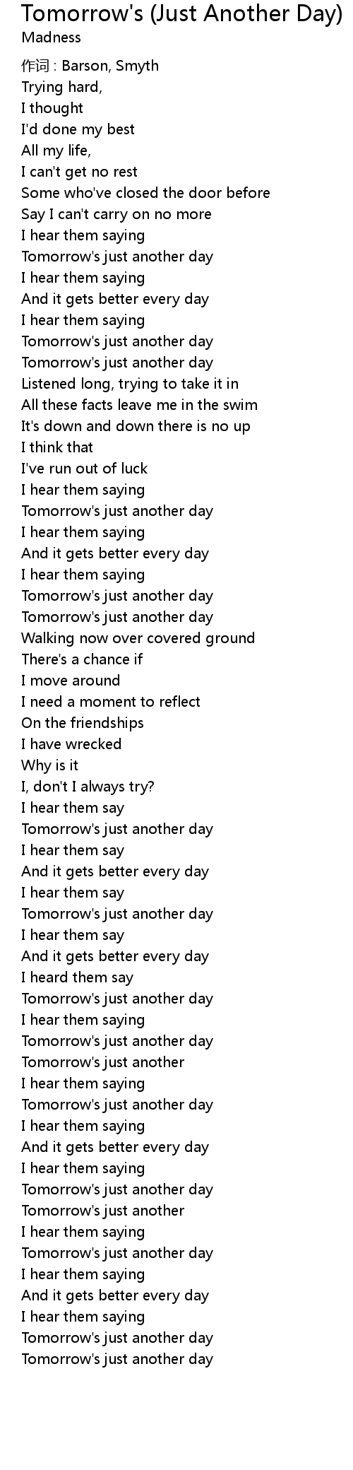 | Tomorrow' s just another day | |