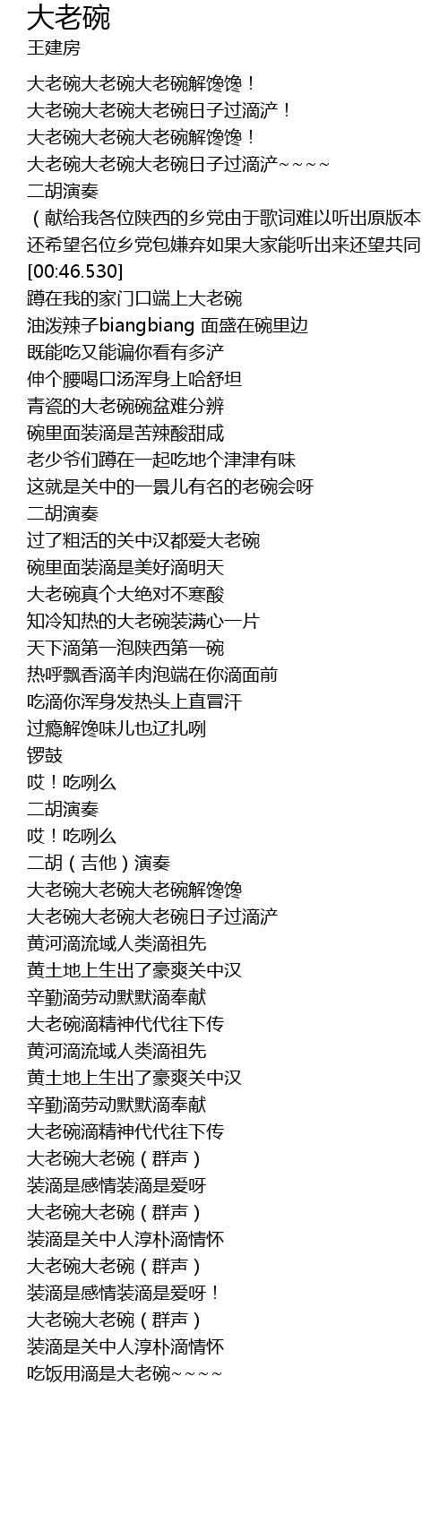 | [02:33.901] | 大老碗大老碗大老碗解馋馋 |