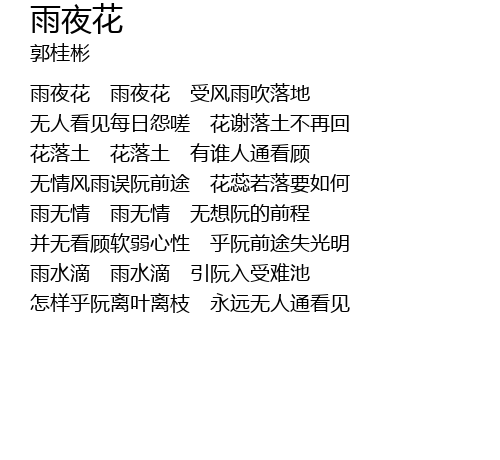 | 雨夜花 雨夜花 受风雨吹落地 | |
