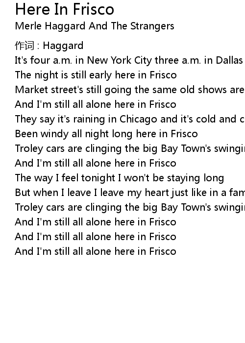 | And I' m still all alone here in Frisco | |