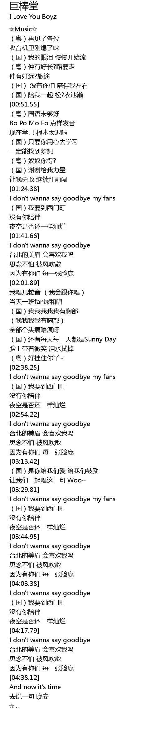 | [03:30.28] | I don' t wanna say goodbye my fans |