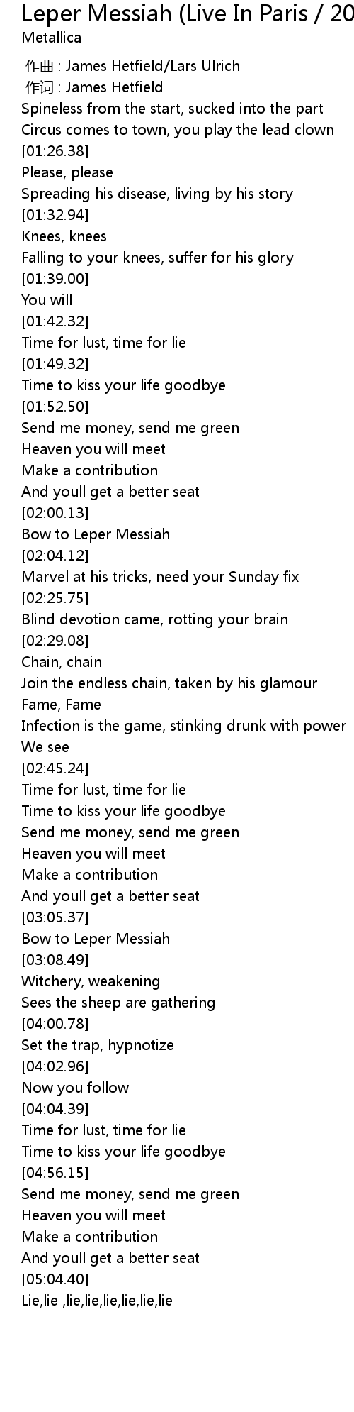 | [02:02.44] | Bow to Leper Messiah |