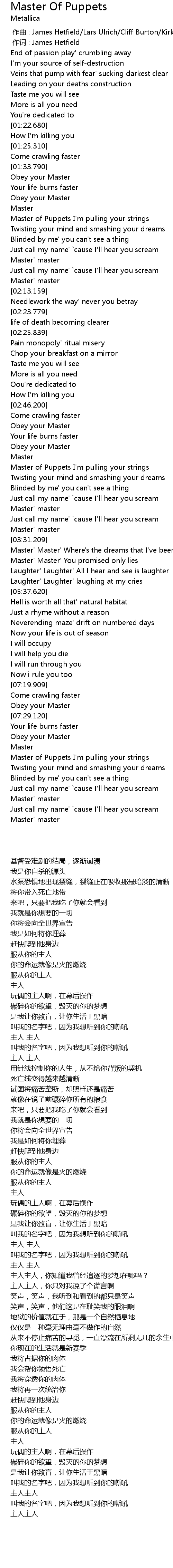 | [01:47.659] | Master of Puppets I' m pulling your strings |