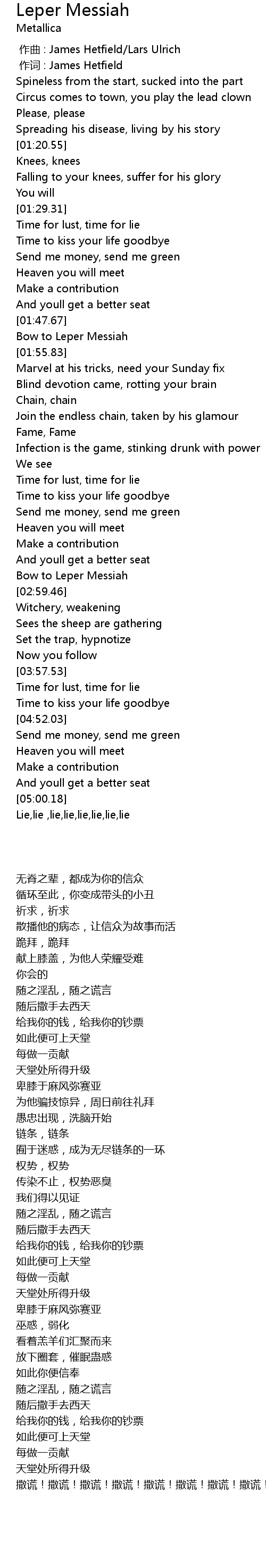 | [01:51.77] | Bow to Leper Messiah |