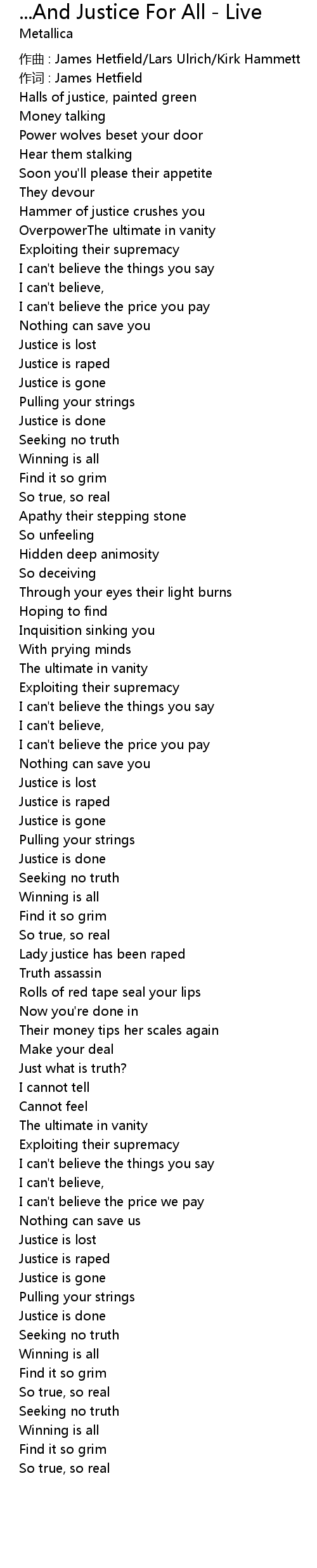 | 作词 : James Hetfield | |