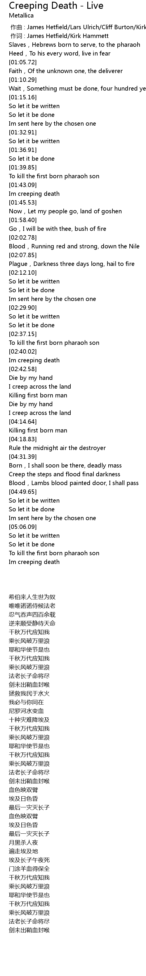 | [00:01.00] | 作词 : James Hetfield/Kirk Hammett |