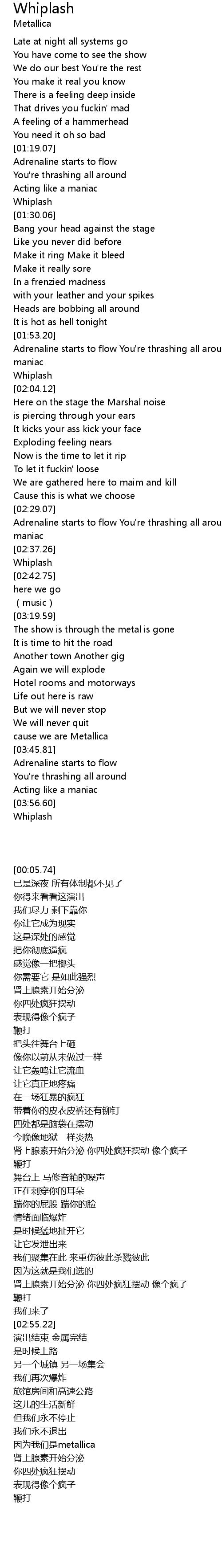 | [02:30.63] | Adrenaline starts to flow You' re thrashing all around Acting like a maniac |