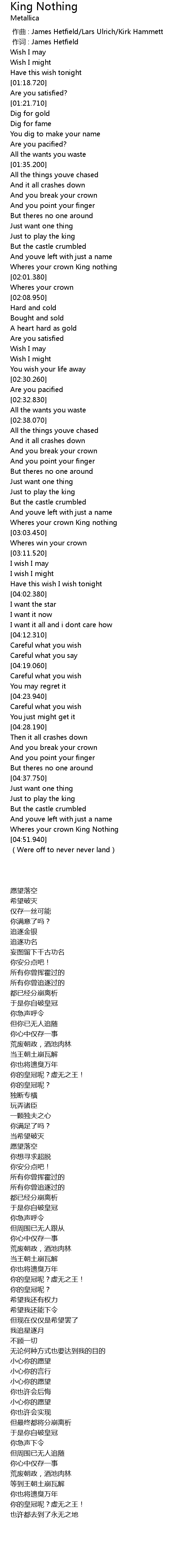 | [00:00.00] | 作曲 : James Hetfield/Lars Ulrich/Kirk Hammett |